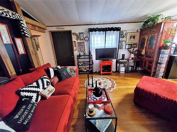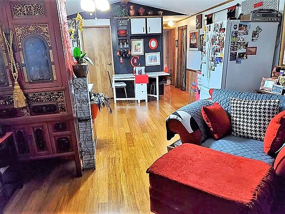 Welcome home to this beautiful, impeccably maintained, 2 bedroom, 2 bath, Golden West. This is a manufactured home in a Senior (55+) park and NO land is involved with the sale of this home. This wonderful home offers approximately 924 SF of room and has been upgraded with hard wood flooring, new vinyl and is freshly painted throughout. Open plan living area, paddle fan, glass top stove and side by side refrigerator with bottom freezer in the kitchen, built in storage cupboard in the master bedroom, large walk in shower in the master bath and one piece tub shower in the master bath. Lovely large front deck with Trex decking, perfect for entertaining or relaxing, large yard, two storage buildings, one with power, containerized garden area, skylight in carport. Roof is approximately 7+ years old and the furnace and heat pump are approximately 8+ years old. Living room measures approximately 13x16', master bedroom 12x13', 2nd bedroom 9x13', utility room 5x8'. Front deck measures approximately 8x12', front awning 8x12'. rear deck 3x4' plus walk way to storage buildings, carport 12x46', storage buildings 6x8' and 10x20' with power. Heat pump for economical heating and cooling. Pet Policy: 2 pets to 20 lbs ea. Base park/Space/Lot rent is approximately $673 per month. ?