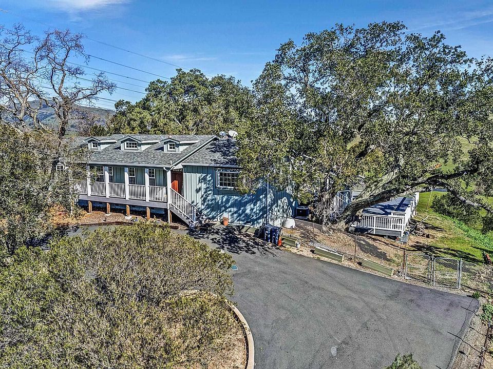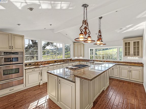Rarely available Stunning Sunol Rancher on 5.85 acres. Next to neighborhood wineries, ranches & surrounded with impressive jaw-dropping MILLION dollar views! 3 outbuildings including Cottage, Separate Office & 4+ Car garage. Main home was thoughtfully rebuilt from ground up 7 yrs. ago, including plumbing & electrical. Gorgeous Chef kitchen w/oversized island, 2 prep-sinks & lots of storage including oversized pantry! Beautiful hand-scraped engineered wood flooring. Sun-drenched interior w/ vaulted wood-plank ceilings. Inside laundry & remodeled baths all w/heated floors. Primary bath w/ steam shower. Dual-zoned heat/air-conditioning. Lower level game room/bar area ideal for family/friend get-togethers (4th bed. currently being used as an office). Detached Studio COTTAGE with kitchen, bath & fireplace (own septic) just in need of an interior refresh! Detached outdoor office would be perfect for a small business. Newer well w/ two 5000 gal. H20 holding tanks. Newer multi-level Trex decking surround the main home to enjoy the panoramic views of the peaceful Sunol Valley. Whether its a big family reunion or an unforgettable holiday, this home offers it all.