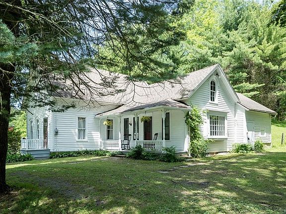 Delight in the soft thwack of the screen door or pull on the rope to ring the dinner bell high atop the roof as everybody returns home from their adventuring to join you at the original 1866 farmhouse dinner table. With 19th century charm and plenty of acreage to roam and cultivate, the new owners of the property will have the pleasure of calling this historic house and land a home. All original flooring, natural wood trim as well as the original hand-made pantry that is the focal point of the kitchen. Newer roof, furnace, hot water tank, plumbing and electric all updated. New well. Barn was refurbished in 1990 with a NY State grant. See listing attachment for historical facts on the treasure.