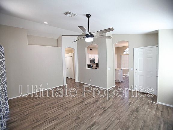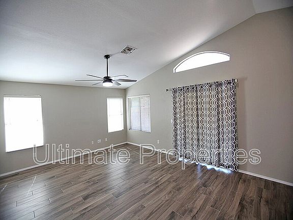 3 bedrooms + 2 bathrooms. Kitchen features granite countertops, kitchen island, and stainless steel appliances including refrigerator, range/oven, dishwasher, and microwave. High-quality flooring throughout. Ceiling fans and blinds in all rooms. Master bedroom boasts a walk-in closet and shower. Backyard includes grass landscaping, covered patio, storage shed, and RV gate. Located near Loop 101 freeway, restaurants, and grocery stores