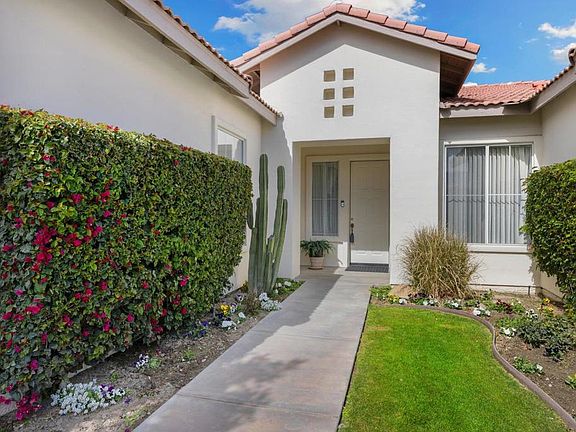 Nestled in the heart of Palm Desert, this beautifully maintained 3-bedroom, 2.5-bathroom home in Canyon Crest is the perfect blend of comfort and convenience. Ideally located near top-rated schools, scenic parks, fine dining and world-class shopping, this home offers over 2,500 sq. ft. of living space in an unbeatable location. Step inside and enjoy the open, airy great room floor plan, with an oversized living room that features a cozy fireplace and flows seamlessly into the kitchen and dining areas. Large windows and a sliding door to the patio flood the space with natural light, creating a bright, inviting atmosphere. The spacious main bedroom is a true retreat, complete with a large walk-in closet and an en-suite bath featuring dual vanities and a step-in shower. On the opposite side of the home, two generous guest bedrooms share a full bath with dual sinks and tub/shower. A powder room is perfect for additional guests. Recently repainted inside and out, this home is move-in ready. All bedrooms have been updated with new carpet and the well-designed den/office includes built-in floor-to-ceiling bookcases and a desk--perfect for work or leisure.Step outside to your own private oasis, where you can dine alfresco, take a dip in the sparkling pool or relax under the covered patio. With no HOA dues, this is a rare opportunity to own a home in one of Palm Desert's most sought-after communities.Don't miss out--call today to schedule a tour!