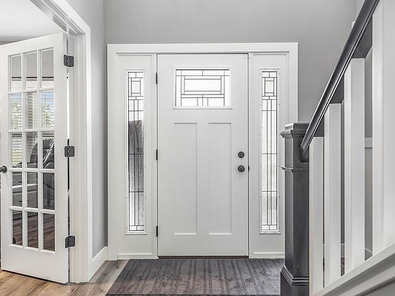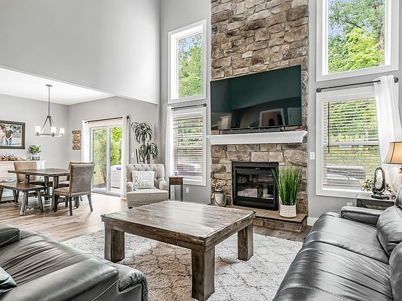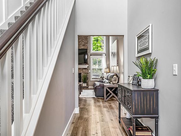 ** BACK ON THE MARKET, buyer financing fell through ** Gorgeous, like new 2-story home with main level primary bedroom in the premier Valencia neighborhood off Rothman Rd! Located on a quiet cul de sac & backing up to a wooded area for peaceful nature views, this 4 bedroom, 2.5 bath home has over 2200 sqft plus attached 3 car garage. Built in 2020 it has been impeccably maintained & is sure to charm from the moment you arrive. Attractive exterior is inviting with a mix of vinyl & stone facade, professional landscaping & covered porch. Step inside the front door with beveled glass matching sidelights & 2nd story window allowing tons of natural light into bright & welcoming foyer & overall general atmosphere. Home office/den off foyer behind French doors has built-in desk with storage for all your organizing needs. Lovely wood flooring leads back to stunning vaulted great room featuring a floor-to-ceiling stone fireplace flanked by windows. Intuitively designed open floor plan flows from main living area to dining area where you can enjoy meals with a view in front of sliding glass doors to oversized back 20x17 patio (plus hot tub slab) Gourmet kitchen is a chef’s delight with abundant cabinetry, walk-in pantry, SS appliances, quartz counters & central 5.5’ island. Mudroom linking kitchen & garage includes built-in cubbies for coats & shoes. Generous main floor primary bedroom has a wonderful en suite bath with glass tiled walk-in shower, double sink vanity & large walk-in closet with attic access. Half bath & laundry complete main level. The carpeted upstairs is where you’ll find 3 more comfortably sized bedrooms, all with walk-in closets & ample storage throughout. Bedrooms are split, 2 on one side with full shared bath & final bedroom on other side at end of catwalk overlooking the great room & foyer. Back yard feels extra private due to the mature tree line & strategically placed evergreen bushes so you can relax in peace & comfort. Make it your own private oasis with the hot tub hook up or simply kick back & unwind on the oversized patio, perfect for back yard BBQs, dining al fresco or hanging with friends. Conveniently close to I-69/469 as well as nearby shopping, dining & groceries—Chapel Ridge Shopping Center & Cherry Hill Golf Club are only minutes away. This is a high quality built home with modern lighting elements & attention to detail visible in the materials & craftsmanship.