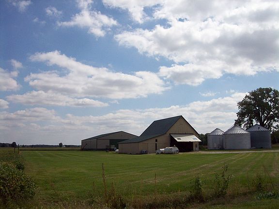 Everything you're looking for here on this 5.5 acre mini farm. Home has 3 bedrooms, 2 baths, living room and family room, 2 fireplaces, relaxing front covered porch and 2 car garage. Outside is a 60' x 60' shop with concrete/ electric, water and heat also 72' x 120' x 16' tall almost new post-frame building. Also on the property is 3 functioning grain bins accumulating 35,000 bushels of grain storage.