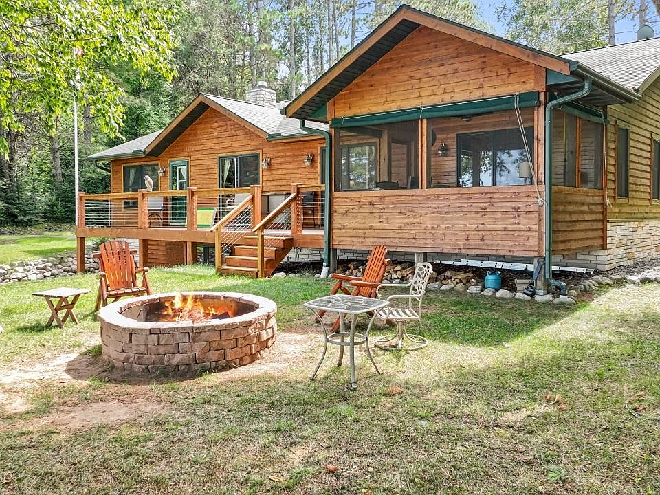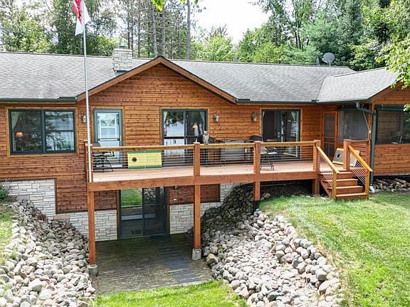 The Northwoods are calling and this home is the answer! Built in 2008, this home has vaulted ceilings, 3 bedrooms, and 3 full baths, granite counters and the perfect mix of knotty pine and drywall. A wonderful addition to the generous primary suite is a screen porch that also walks to the new deck. One bedroom shares the 2 way-fireplace with the living room and is currently used as a sunroom (no closet.) The lower level is a treat! Full-on family game room that takes you right out to the lake. Bonus (bed) room is here too! Beautiful Birch Lake is just steps away — with no stairs! The shore is sandy, has fabulous views and great fishing! Almost everything in the home stays!