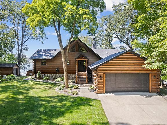 OPEN HOUSE CANCELLED- OFFER ACCEPTED! Your lake home oasis with 100' of western facing lake shore on Cedar Lake is HERE! Level lakefront just steps from the home offers sandy area to play, updated dock, lifts, boat house, 3 tier deck, fire pit area and storage shed. This exquisite timber framed home has been thoughtfully and beautifully renovated from top to bottom. Upon entering you are welcomed by spectacular lake views through large expansive windows. Open concept floor plan with stunning wood burning fireplace, LVP flooring, vaulted ceilings, gorgeous chandeliers and ceiling fans. Updated kitchen includes knotty elder cabinets, soap stone and quartz counters, large island, tile backsplash, stainless appliances, and hood vent. Laundry room off kitchen for convenience. Main Level Primary Suite with lake views, walks out to large deck, has 3/4 updated ensuite with tiled shower and quartz counters. Additional powder bath and bedroom/flex room on Main. Lower Level holds large family area with in floor heat, double sliding doors to patio, LVP flooring and beautiful gas fireplace with marble surround. Two additional bedrooms and full bathroom for your lake home guests! Home has top of the line AVX AV and security system included. Massive deck for relaxing and taking in the sunsets. Lakeside patio furnished for entertaining including an outdoor TV for your Game Day viewing pleasure. Additional 1/2 acre lot across the street included with sale- used for storage. Roof replaced in 2024. Seller willing to sell furnished with the right offer to make this property even more move in ready! Schedule your showing TODAY- this one won't last! Open House on Saturday 9/20 from 11-1.