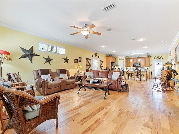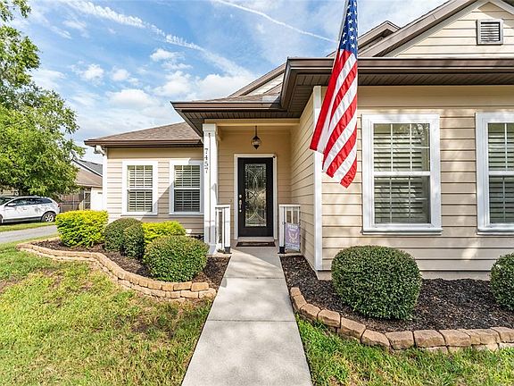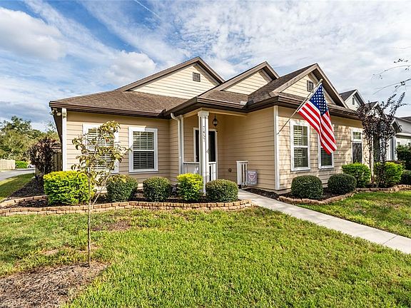 Welcome to the charming and highly sought after SW community of Longleaf! This 3/2 home boasts 10ft ceilings throughout, beautiful hand-scraped wood flooring and crown molding for an upscale feel. The open floorplan is perfect for entertaining guests. Spacious Master Bedroom with en-suite and large walk-in closet. The lovely kitchen has stainless steel appliances, an abundance of cabinets, new backsplash and countertops. New (2025) microwave, stove and oven with air fryer. Two guest bedrooms located off main living area share the 2nd bathroom with tub/shower combo and granite countertops. Plantation shutters installed on all front windows as well living room windows. An abundance of natural light in all living areas. Enjoy the gorgeous views and beautiful Florida weather on your outdoor oasis! The gorgeous, oversized paver patio with firepit and café lights is the perfect place to wind down. This property is on a corner lot and therefore has extra space and privacy. Fully-fenced backyard with privacy fence. HVAC 2017, Roof 2010.This home is on CLAY electric. Longleaf HOA maintains front/side lawn and has a clubhouse, beach entry pool, splash area, tennis/basketball courts and a playground. Great location and close proximity to University of Florida, Santa Fe College, UF Health, HCA Florida North Florida Hospital, Butler Plaza and Celebration Point. Call today to tour this property! This information is deemed to be true and correct at time of entry but not guaranteed. Please verify details.