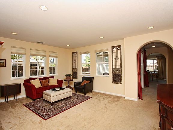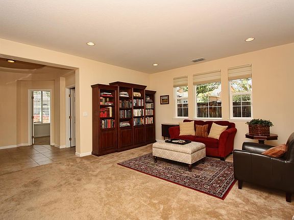 Bedroom/Den on first level and full bath. Formal living room, formal dining room, butler's pantry. Private patio with alum. cover, lighted ceiling fan. Family room with fireplace, opened to kitchen with granite island and counters, walk-in pantry, daily dining area. Master BR features fan. Workstation, 2nd level laundry. Loft w/projector for family night movies. 3 car garage. Solar assist water heater. Shows like a model.