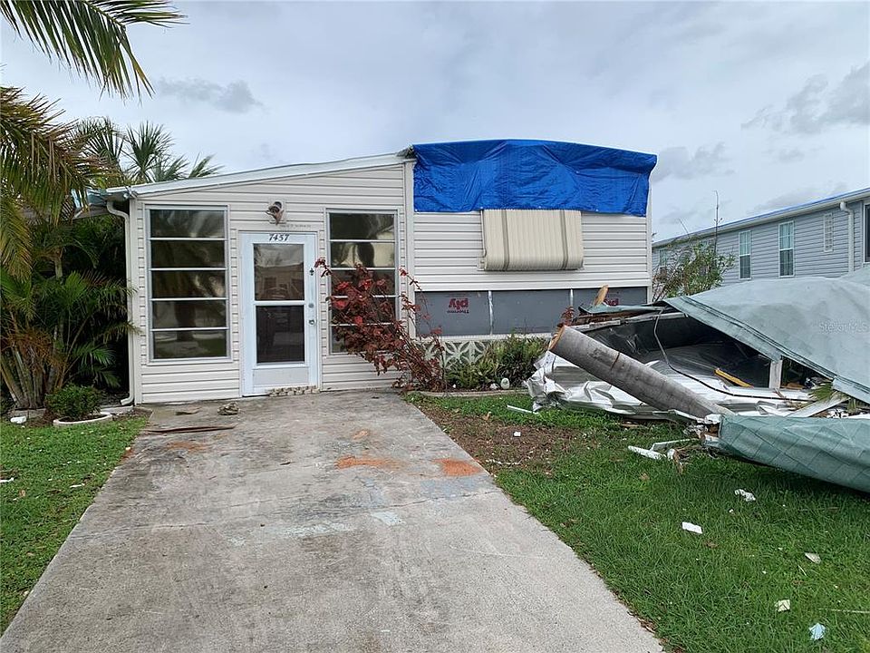 This is an OVERSIZED CORNER LOT. Property has SPLIT BEDROOMS, HIGH CEILINGS AND HEATED AND AIR CONDITIONED FLORIDA ROOM. Master bath was updated with ceramic tile and walk in shower with a seat. Washer is 2 years old. Dishes and cutlery are newer. Property comes with electric water kettle, food processor, 37" LG LCD flat screen TV, DVD player with remotes, 40 gallon electric hot water tank, a large toaster oven. The Village of Holiday Lake boasts 20 boat slips (with more to come) with access to Charlotte Harbor and the Gulf of Mexico through the lock system. Beautiful pool area boasting 2 pools and BBQ area. There is always something going on for everyone at the large recreation hall with full kitchen, craft room, laundry facility along with areas for woodworking , tennis, shuffleboard and more. Golf Carts welcome. Would make a great winter get away spot. Low HOA and NOT a 55 plus community. Property was damaged in the hurricane and has several water stains in the ceiling and some soft spots in the floor. Property has been tarped.