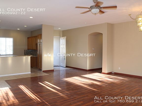 Beautiful 3BR/2BA unfurnished home for long term lease on a cul-de-sac in Palm Desert. This home features a large, open kitchen/living/dining area with decorative fireplace and two sets of patio doors leading to the huge enclosed patio and yard. Eat- In Kitchen with granite counters and tons of cabinet space. Bring your own refrigerator. Hardwood laminate plank flooring in all main areas and bedrooms. Tile in kitchen and bathrooms. Large office with double door entry that can be used as a bedroom. Huge master bedroom suite with walk in closet, double vanities and patio doors leading to the rear yard. Interior laundry room with washer/dryer hookups. Attached two car garage. Tenant to pay all utilities. All applicants must pass a comprehensive background screening including income verification and landlord references. Renter's insurance is required. All applicants must have the following: monthly income of three times the monthly rent, no prior evictions, good rental history, no previous felonies, and an acceptable credit score. Call for an appointment today!! If you see this home advertised online for less than the rental amount quoted here, the ad is a SCAM. We are the only authorized agent for this property. Please email us a link to any bogus or fraudulent ads so we can report it to the appropriate authorities. Please do NOT send money to anyone who offers keys in exchange for a deposit check - especially if they are out of state. When in doubt, please feel free to contact us.