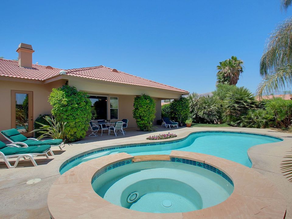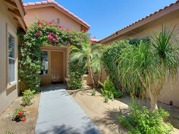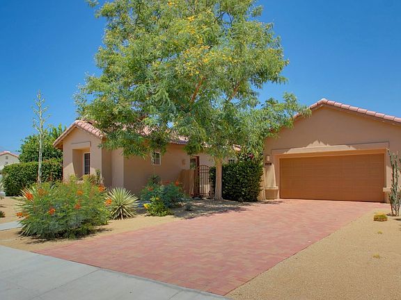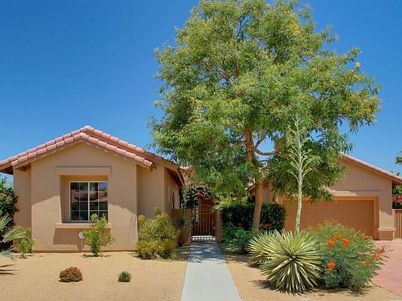 Live in this desirable corner lot location in the Canyon Crest neighborhood. This lovely 4 bedroom, 4 bath home has a very open floor plan with soaring ceilings, spacious rooms and a large attached casita. The square footage is approximately 2,959 sq. feet with a .26 acre lot. Featuring a courtyard entry, great room with fireplace and built-in entertainment center. Kitchen boasts granite counter tops, large center island/counter bar and breakfast nook. New carpet and paint are throughout the interior of this desert home. A large master suite with cathedral ceilings has a grand walk-in closet. Relax by the pool and spa in the secluded backyard oasis. Enjoy indoor/outdoor living while entertaining with family and friends. Shopping, hiking, dining and entertainment are all nearby!
