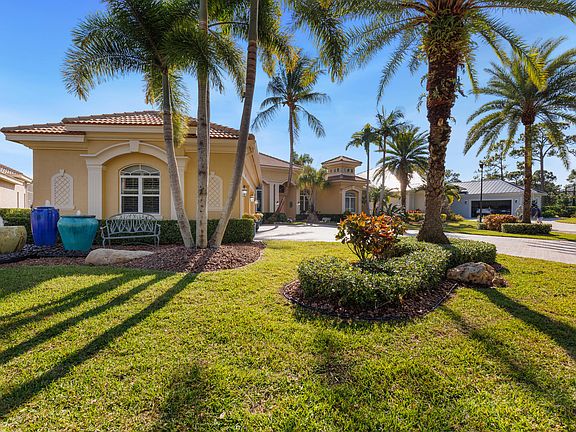 Gorgeous Custom Home on .55 Acre lot at ''PGA Village'' with beautiful view of the 7th Hole of the Pete Dye golf course with exceptional outdoor living! Looking for a Florida Lifestyle you have found it! Featuring CBS Construction, Impact windows, paver driveway, 4 BR's, 4 BA's, Den/Office 4.5 CG w/ great curb appeal & fountains. Foyer entrance, volume ceiling, tile flooring in main areas, formal living/dining room & furniture negotiable. Stunning Gourmet Eat in Kitchen with stainless steel Wolf & Miele appliances including sub-zero refrigerator, gas range/stove, coffee maker, hood, pot filler, breakfast bar & Island. Spacious family room w/ custom featured wall & TV. Split floor plan perfect for family & guests. Furnished outdoor area Boasting a 82 x 48 fenced in patio & heated pool/spa. Some details offered outside include Large summer kitchen with customer details, fire pit section, tekkie hut, fireplace, several sections where entertaining is PERFECTLY DESIGNED in a Tropical setting with mature landscaping & golf course views. Large Master suite with wood flooring, walk in closets with built-in's & large Master Bath with separate shower, Roman Tub & dual sinks. Bring all your toys with plenty of room in the 4.5 Car garage, custom cabinets, granite counter tops & shelves. This home has extensive custom details and you must see it to appreciate all the finishes, crown molding, custom wall paper, Plantation shutters just to name a few. Located in PGA Village where you can find 3 Champions Golf Courses well know to many and no mediatory golf necessary. Included in HOA Dues : Manned gated security, cable, internet, common areas & recreation center (The Island Club) offering a resort style pool, fitness center, tennis, pickleball, library, billiards, ballroom, card, crafts, shows, clubs & even travel. Located close to shopping, schools, restaurants, hospitals & even home of the NY Mets Spring Training. The Treasure Coast has beautiful waterways for fishing, boating & beaches only 45 minutes from Palm Beach Airport.