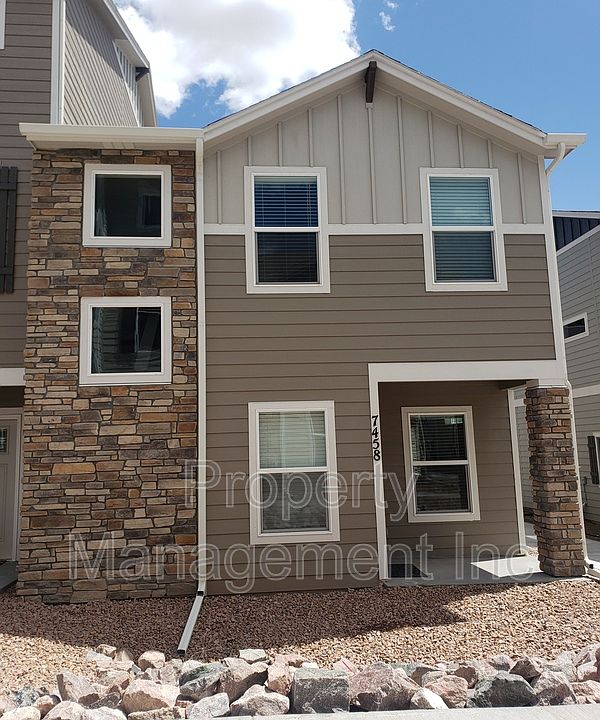 This 1674 square foot townhome home has 3 bedrooms and 2.5 bathrooms. This home is located at 7458 Mount Elbert Poin, Colorado Springs, CO 80908.