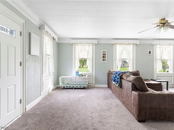 Historic Home situated on nearly 3 acres corner lot with 5 car garage / outbuilding in Western Reserve School District is waiting for you. Walk into the large living room with a fireplace and admire the tall ceiling and natural lights throughout. Dividing this room to the formal dining is a double barn door overlooking Pricetown road to your right through a picturesque window. To your left is the updated full bath and steps to the second level where you can find the 3 bedrooms, one of which features 2 nice sized closets for more storage and a window AC for extra cooling. Back to the first floor from the dining area you will find the oversized kitchen with a peninsula for your quick bites and or a quiet brunch by the nook. First floor laundry is nearby for added convenience. Completely updated (from floor to walls and insulation in March 2022) spacious mudroom connects the main house to the covered deck which was added 5 months ago only! Sit and relax while enjoying the wide and quiet b