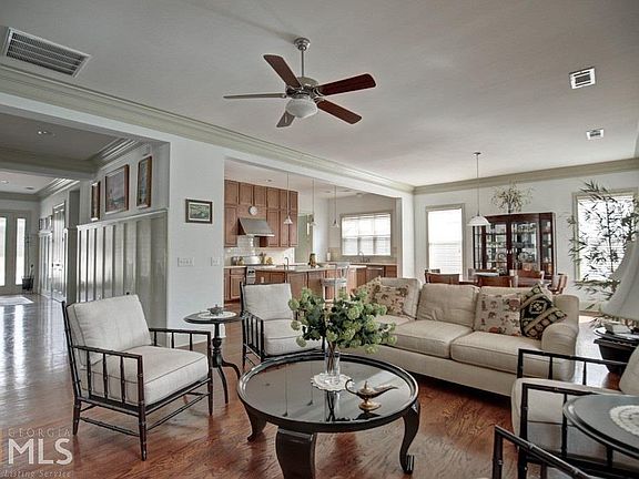 You'll love the High Ceilings in this 3/2.5 Ranch! The Open Floor Plan is just perfect (see pic 2)! The Family Room is Open to the Dining Room & Kitchen. The Family Chef will love the Gourmet Kitchen w/Stainless Steel Kitchen Aid Apps, Tons of Storage, & Island. Office/Formal Living for extra space. True Master in Rear of Home w/Trey Ceiling, Large Walk-in Closet w/Custom Shelving & Spa-Like Bath. Two add'tl BR in Front of House. Covered Back Patio in Flat, Private Backyard. Enjoy the Neighborhood Amenities including Clubhouse, Pool & Tennis only Steps from the house!