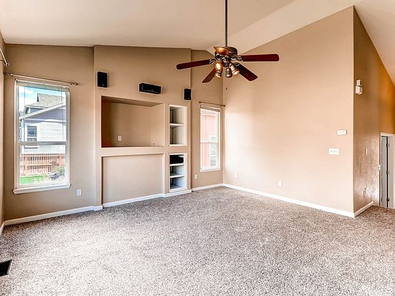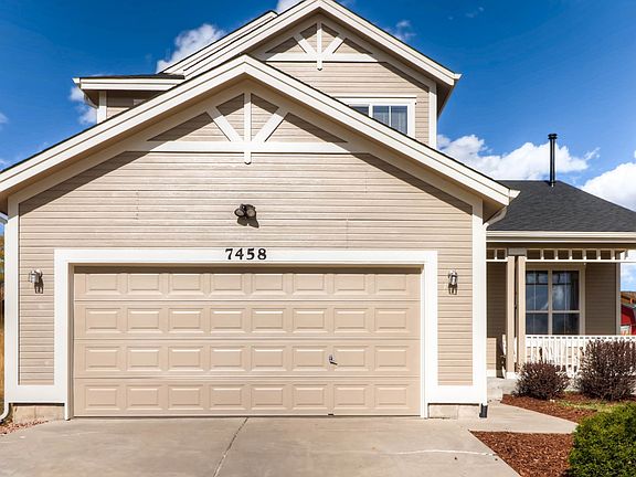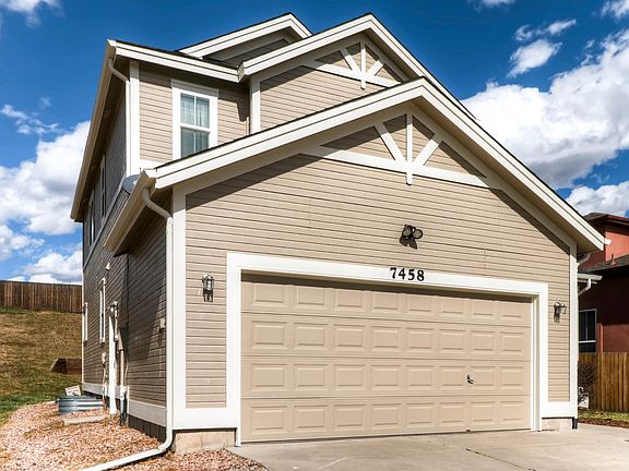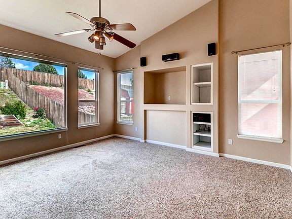 Bright and open home with loads of living space! Enter to hardwood floors in the foyer & glass French doors into the office. Huge, open main level is the heart of the home w/ big windows, lots of light, & vaulted ceilings! There is surround sound in the family room for movie nights; kitchen & dining area features flowing hardwood floors, tons of counter space, 42” maple cabinets, big island bar, pantry, & gas stove! Large master includes vaulted ceilings, walk-in closet, double sinks in the bathroom, & soaking tub. Two additional upstairs bedrooms have Jack & Jill bath, views of Pikes Peak. Huge unfinished basement has tons of potential. In the evenings, relax on the covered front patio. New carpet throughout the entire home, new roof, new exterior paint. Close to parks, schools, & shopping!