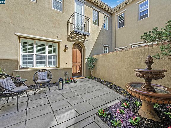 OPEN HOUSE 4/20 & 4/21 from 1:00-4:00PM. Enjoy the Good Life at Abbington in the Mosaic neighborhood in the desirable community at Gale Ranch. Entering through the private courtyard professionally landscaped with a soothing fountain you'll find this 3 Bedroom & 2.5 Bath, 1730 SF, home . The spacious family/great room w/ fireplace, media center & a balcony flows to the kitchen & boasts SS appliances inc. a 5 burner gas range, granite counters & a chef like island with storage. The adjacent dining room is complete with large windows providing lots of natural light, a built in work area with cabinets for more storage. The master suite has a walk in closet, shower w/glass door, marble counters and shower surround. The 2nd BR has a walk in closet w/views of the courtyard. Plantation shutters throughout. Just minutes away from Top Rated K thru 12 SRVUSD schools, the San Ramon City Center, shopping, restaurants, 680 & Dublin BART.