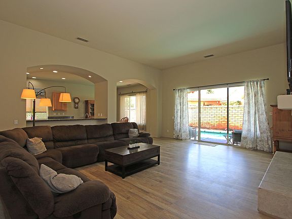 Great home in the heart of Palm Desert ~ 2705 SF, 3 BR plus Den/Office, 2.5 Baths. Open floor plan with laminate wood flooring and tile. The spacious kitchen is a Cook's dream with gas cooktop, double ovens and new refrigerator plus dinette area. Kitchen also features an abundance of cabinetry including a pantry, a counter seating area, PLUS a wet bar area that is open to the large great room. The great room is complete with fireplace and views of the backyard and pool. Entertain in your formal dining room. Large Master Bedroom with a spacious walk-in closet. Master bath has dual sink, soaking tub and separate shower. Welcoming backyard with pool and raised spa - pool has new saltwater system. Separate laundry room and sink, with washer & dryer that stays. Home has 2 zone HVAC. And NO HOA dues! The location doesn't get any better than this - very close to all conveniences such as schools, shopping and restaurants.