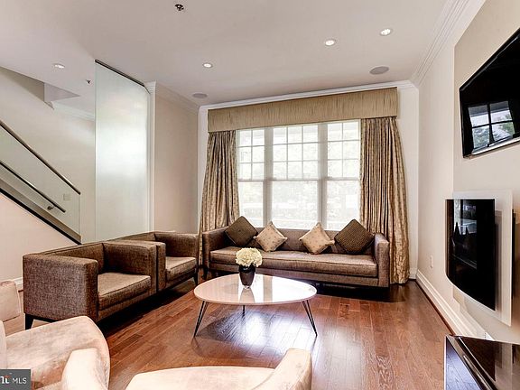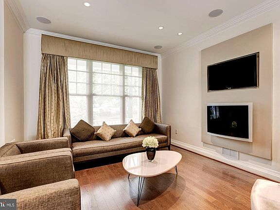 Completed in 2011 and a culmination of 2 years and more than $500,000, this to-the-studs renovation is a complete transformation from traditional to modern - in aesthetics and in function. The former side hallway/living room/dining/kitchen is now a stunning example of today~s must-have open concept living. The well regarded Stuart Kitchens of Bethesda in collaboration with Ferguson ProVisions and Architectural Ceramics, all working closely with the owners to create their dream kitchen and baths. ***General features built in to the home include a complete Gramophone whole house control system, including HVAC, Lutron lighting and Crestron audio. All can be accessed by several control panels thru-out the house and can also be set up on an iPad. Silhouette shades thru-out the house are also controlled by remotes. 8 televisions (including 2 home theaters) are pre-wired thru-out the home, all but the one in the garage have built-in ceiling speakers. There are 5 Rinnai tankless water heaters on the roof, yes, just for this house. The house security system includes camera monitoring from the doorbell and 3 other cameras front and back, all with audio alert. ***The living area features full home theater with front and top speaker channels plus a built in subwoofer (action movie fans rejoice!) ***The kitchen could be its own brochure: Stuart Kitchen upped their game when creating the owners~ dream. An expanse of Galaxy black granite counters includes a breakfast-bar peninsula with seating for three. There is also an oversized island with a gleaming white quartz top framed with the matching black granite and offers additional seating for two. Anchored by the stainless Subzero fridge and 36~ Wolf stove with 4 burners plus full depth griddle, there is a below counter microwave drawer, under-counter Subzero refrigerated beverage drawers and an under-counter commercial ice-maker ~ nice. Details details: the 3 pendant lights over the peninsula are Schonbek crystal, custom ordered to match the colors from the backsplash tiles. The dining area is spacious and airy with a large triple window overlooking a private patio and the lovely community private courtyard. This level is completed with the powder room highlighted by a dramatic tapered column pedestal sink and an attention grabbing ~wavy tile~ accent wall by Porcelanosa. ***The second level has a bright open den with great window expanse - a perfect lounge retreat or indulgent home office. Remotely shut the blinds and enjoy the home~s second home theater. There a second fireplace in this space. ***The owner~s suite encompasses the entire width of the home and faces the tranquil courtyard. There is a large walk-thru closet completely outfitted with a tall double dresser and ample shelving & hanging space. The master bath features heated flooring, elaborate tiling, sculptural freestanding tub, beautiful glass-enclosed multi head shower (Porcelanosa tile in shower), double vanity with vessel sinks and Robern medicine cabinets with heated mirror, interior plug and nite-lite feature and a built-in TV facing the tub with recessed ceiling speakers.***The top floors feature 2 generous bedrooms each with en suite full bath with the continued theme of beautiful tile and fixtures. (Lucky children or guests will not want to leave!) ***The lower level is no throw away. Entering from the garage, there is a clever shoe drop alcove (mud nook?) with a bench facing a shoe & stuff cabinet. Adjacent is good sized room perfect as a home office, hobby room or exercise space ~ heated floor and the TV with the ceiling mounted speakers! There is a closet with an electronic lock for valuables and in that closet a fire and water rated safe for the more seriously valuable valuables. ***The often used phrase ~totally renovated~ is rarely realized to the extent of this wonderful home. It is truly a unique opportunity in the perfect downtown Bethesda location.
