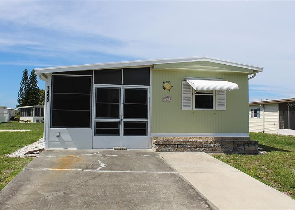 TURNKEY, FURNISHED and INCLUDES THE GOLF CART! Bring your Offers!!! WATERFRONT COMMUNITY with docks and its own boat ramp just minutes to open water, Charlotte Harbor and the Gulf of Mexico. This home is TURNKEY, includes the GOLF CART and boasts a nice sized air conditioned lanai offering an incredible opportunity to sneak out of the cold winter months at an affordable price! The owner has done some updates in the kitchen, including new lower cabinets and countertops. New Vinyl windows in the lanai. NEW AIR CONDITIONER in 2021. and ROOF 2016.The village boasts 20+ boat slips. Beautiful pool area with 2 pools and BBQ section There is always something going on for everyone at the large recreation hall with full kitchen, craft room, laundry facility along with areas for woodworking, tennis, shuffleboard and more. Golf Carts welcome. Would make a great rental or your winter get away spot. Live the Florida lifestyle of your dreams