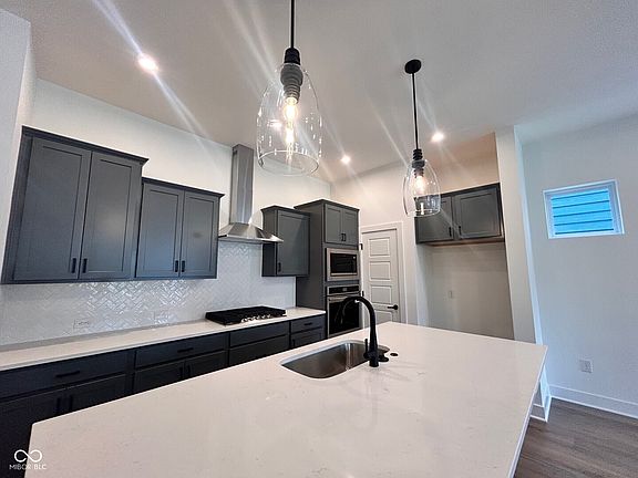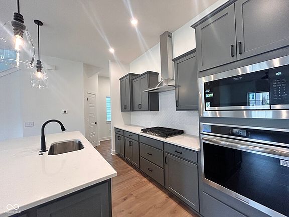 *Sample home shown, actual home features may vary. Hosta home features trendy kitchen cabinets, quartz countertop, luxury laminate wood flooring in main areas, stainless steel appliances with gas range, refreshing tiled walk-in shower, spacious Owner's Retreat with a walk-in closet and more. Garage is finished, 10' tall and comes with remotes. Our homes feature 9' and 10' ceilings. Community pool and a pool house are our top amenities, and you will be within the walking distance to the Monon Trail, the Palladium, Farmer's market, gourmet restaurants, Arts and Design District, galleries and all other that Downtown Carmel has to offer! Home comes with warranty and HOA is only $90/month. Home is scheduled to be completed May 2025.