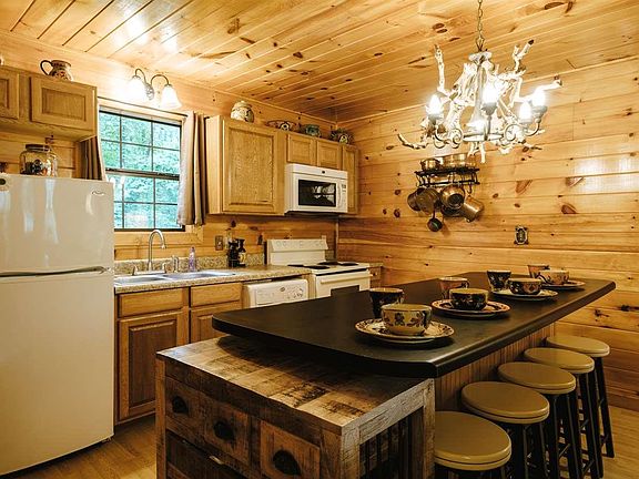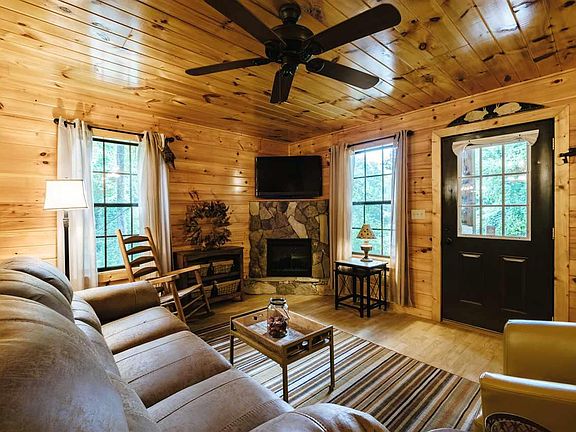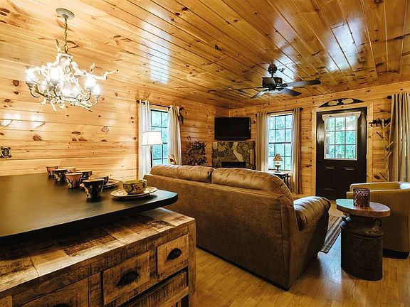Cute cabin located in a secluded area with mountain views. The Home has a stone fireplace, Whirlpool tub, and is furnished and sold AS IS. Everything stays with house. Not for sale