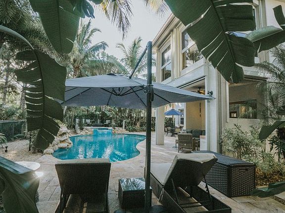 Welcome home to an impeccable paradise with absolutely no updating or work needed, Pulling up to the home you will notice beautiful mature tree lined street. Unique stonework on the facias of the houses. Upon entering thru a unique contemporary doorway you will see soaring ceilings with a gorgeous view of a meticulous tropical paradise. There are upgrades galore including electric hurricane and non hurricane screens around the summer kitchen; natural gas tiki torches around an exquisite heated pool with waterfall and hot tub; 2021 landscape lighting; gel fire pit; surround sound indoors and out and too many more to write. This home is truly resort living. The master Bedroom feels like you are up in a treehouse with large windows up above with the trees.