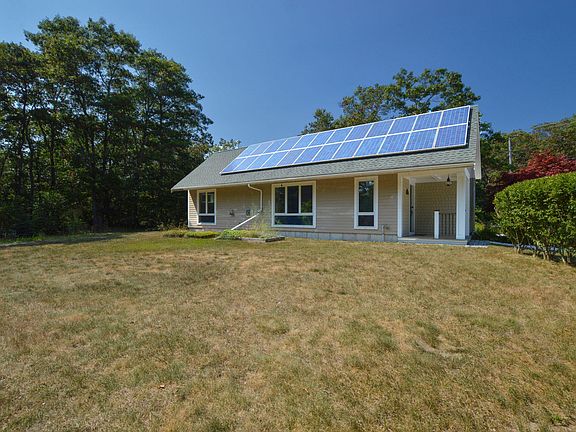 Welcome to 746 Carriage Shop Road, a net zero energy home that epitomized efficiency and comfort. This 2 bedroom, 1 bath home seamlessly integrates modern living with eco-friendliness, showcasing the principles of passive house design. Engineered for optimal energy efficiency, this high-performance dwelling features airtight construction coupled with mechanical ventilation, resulting in a healthy indoor environment. The home boasts triple-pane Argon fill casement windows, designed to minimize energy loss and enhance performance .The heat recovery ventilation system ensures a continuous supply of fresh air while recycling heat from the interior thus reducing overall energy consumption. With a southern orientation and a roof angled to maximize solar gains, residents benefit from both natural heating and shading throughout the seasons.The 5.4 KW solar array not only powers the house but also exceeds its energy demands. The single story layout promotes accessibility and ease, featuring a spacious living room with gas fireplace, a contemporary kitchen with granite countertops, a utility room with laundry and mudroom. Outdoors, the yard offers a serene space for gardening and relaxation