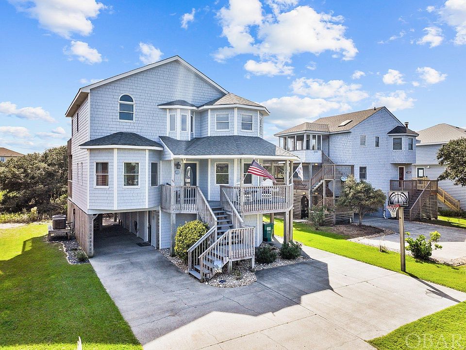 Great Ocean Views from top sun deck, screen porch, ships watch tower & kitchen. The Owners have done everything for you. Just move in or rent right away. Located in the heart of Crown Point Community with pool & tennis court. Kitchen as been remodeled with granite counter tops & custom cabinets, + Mannington Adura luxury flooring. All new Life Proof water & stain resistant flooring, New carpet on staircase & ensuite. The upper level 1 is open floorplan, vaulted ceiling, gas fireplace, kitchen, dining, guest bath & Master ensuite with private bath. Access to the Ships Watch is off the living area. Enjoy relaxing Ocean Views on sun deck & screen porch with hot tub off this area as well. Mid level boosts 4 large BR's with remodeled bathroom. On lower level is the 6th BR with remodeled full bath. An additional game room/gathering room with refrigerator. Home backs to open area & path to the beach. Multi-use path connects to walking, biking & shops, restaurants.
