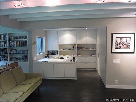 Sophisticated, modern, home located in convenient lower North Stamford, just minutes to the Merritt Parkway. Enter the home and be instantly impressed with the unique style and custom details throughout. The open floor plan lends itself perfectly to entertaining. Two sliding glass doors lead to the hardwood deck and gunite pool; oversized windows bring the serene outdoor setting in to the interior. Completing the main floor are the living room with granite fireplace, large office/ den, custom eat-in kitchen overflowing to cozy family room, dining room and master bedroom with wall of closets. The upper level has 2 additional bedrooms. The three full bathrooms boast sleek styling and European fixtures. Custom built-ins throughout the home provide plenty of storage. The detached one car garage and studio/ workshop is equipped with electric. Sure to please the buyer looking for a unique home. Professional photos to follow.