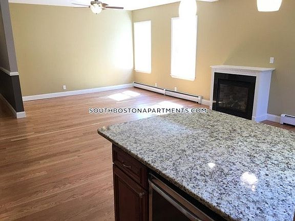 Looking for Common Room Space? VIDEO TOUR and FLOOR PLAN/ROOM DIMENSIONS AVAILABLE BY REQUEST! Gorgeous Open and Updated 3 Bed 2 full Bath! Sorry, no pets. -Updated eat in kitchen with granite counters, breakfast bar, and stainless steel appliances -kitchen opens up to a MASSIVE living and dining space with a working fireplace -Dishwasher and disposal -Gleaming hardwood floors -Large bedrooms, Master will fit a King size bed and has walk in closet. Remaining bedrooms also a good size will easily fit queen beds and both have TWO double closets -Updated tiled bathrooms -Private entrance for top floor apartment -laundry in unit -storage space -square footage approximate Area Amenities: Local Restaurants and Shops, downtown Boston and the financial district, Shenannigans, the Marine Park, the Broadway, Stop and Shop, The Playwright Andrew and Broadway Red line T stations, Carson beach, parks, and more! one year lease