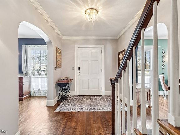 Come be charmed by 746 E Riddle, a stunning example of restored Colonial Revival architecture. Developed in the 1920s as the city's premiere residential district, Fred Byers (Byers Gas-Oil) commissioned (1930) one of the larger (5BR, 2.5bath) homes in the neighborhood, offering beautiful curb appeal, symmetry of enclosed 3-season porch (east) and one-story wing (west) that adjoins and enhances the kitchen / dining area. Inviting front foyer opens to the classic center hall configuration. Large LR offers warmth of lovely fireplace (gas), natural light & hardwood floors. This flows to the 3-season porch to unwind, games, hear the birds. To the west of foyer is the gracious dining room and wonderful spacious kitchen (DW, fridge, stove) w abundant cabinets/counters, island, breakfast/dining space, & sitting room, fantastic for entertaining! Lots of crown molding adds luxury. You'll find the private outdoor space from the kitchen slider, with stone patio, to be a favorite place to rest, refresh & entertain. LR, DR, main floor hallway, sitting room, office (or 5th BR, bookcases for the reader in you), owner suite BR all provide beautiful original hardwoods, kitchen and back hall/half-bath have ceramic flooring. Bedrooms 2,3,4 are carpeted with same hardwoods underneath. Large Owner's suite is a retreat... with built ins, gable spaces, ensuite bath. Spacious basement features exterior access stairs to/from side driveway, work room, laundry room, storage room, and large secondary living room with fireplace & vintage pool table. 2 parcels on the corner of Riddle and Liberty offer generous space, with garden, perennials, berries (blue & raspberry), landscaping, and very convenient pass-thru curved paved drive. Attached 2-car is at kitchen level/entrance with interior access. Comfort of vinyl windows & updated HVAC. Walk-up 3rd floor ready to be made into teen space, artist retreat, or you dream it! New historic restoration color pallet is a wow! Few compare, come see!