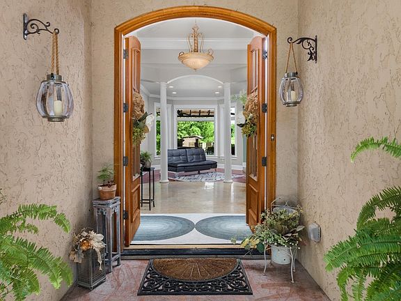 Stunning 1 story estate that redefines luxury living! On 6+ acres of picturesque land home offers a blend of elegance comfort & outdoor enjoyment. Amenities include open-concept living a chef's kitchen with gorgeous custom concrete counters & beautiful stained concrete floors. The primary suite is a true retreat complete with luxurious en-suite bathroom & walk in closet. This is a true oasis with a covered patio area hot tub oversized pool & stocked pond. Kitchen island does not convey.