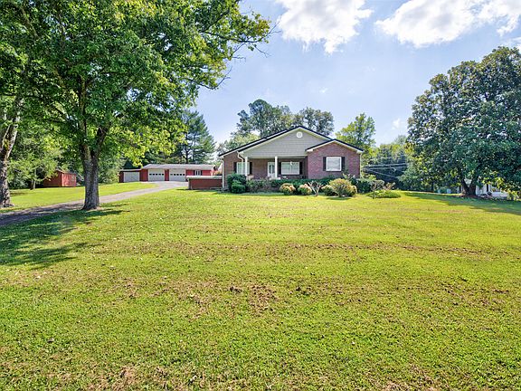 Welcome to this charming, all brick one level home located on a huge, fenced 1.2 acre lot. The spacious front porch is perfect for relaxing and taking in the view of the mountain. The home features hardwood floors, modern stainless steel appliances in the large kitchen, and a formal dining room. The large den/sunroom is perfect for a family room or rec room. Outside you'll find a large, two car garage with workshop space and additional pole barn structure on the right side. Beautiful trees, and plenty of yard space for gardening and hobbies make this home the perfect place to start your next chapter. The sellers have made several recent updates to the home, including a new roof and water heater. Schedule your appointment today before this one one gets away! Buyer to verify any information they deem important.
