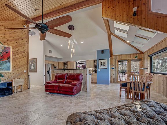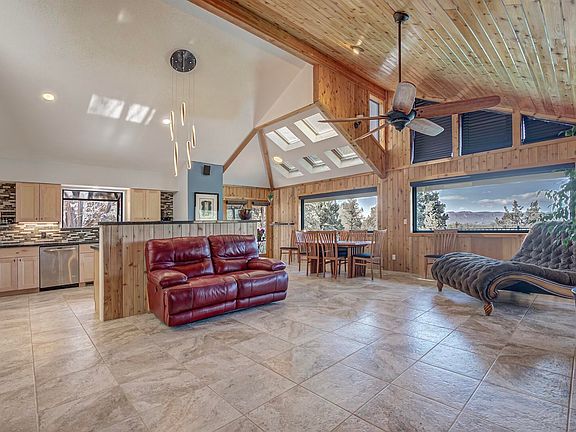 Elevated country living with this beautiful 4BDRM/3BA/2CG, 2974sf modified Chalet style home. Nestled on a dead-end-cul-de-sac road with stellar views of the mountains and sitting on 1.35AC, with a private well. Great room displays vaulted tongue-in-groove ceiling, 4 skylights, modern kitchen with refrigerator, electric oven, dishwasher and built in microwave. Spacious Master bedroom is on main level with 3/4 bathroom. Home has been remodeled and upgraded by owners. Second bedroom, laundry room with half bath round out the main level living. Lower level has spacious family room with built in bookcases and access to cabinets for a breakfast area. Two bedrooms and a bonus room for an office space or storage. Private access to lower level so it can be used as an in-law quarters. Covered deck with views! Fully fenced with detached two car garage and plenty of room to park RV and additional vehicles. Wrought iron entry gate is on a remote. No HOA. Home is occupied and must have an appointment to see this exquisite property. Sauna does not convey with the home.