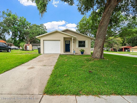 Welcome to 746 S Lemon Ave, a charming two-bedroom, one-bathroom haven nestled on a corner lot in downtown Brooksville! This meticulously maintained home boasts a plethora of modern upgrades, ensuring comfort, safety, and efficiency. Step inside to discover a refreshing oasis, thanks to the newer (2022) Reem A/C system seamlessly integrated with ductwork throughout the house and garage. Say goodbye to allergens with the UV bulb nestled inside the AC cabinet, diligently removing dust, pollen, mold spores, pet dander, and more. Gaze out through new (2023) Anderson Windows, hurricane-rated to withstand winds up to 136mph, featuring full-length screens, double-hung functionality, and privacy glass for your peace of mind. Stay hydrated and healthy with the addition of a Reverse Osmosis drinking system installed in 2023 under the kitchen sink, complete with a convenient spout next to the faucet. And, feel secure with the comprehensive ADT security system, equipped with active Smoke/Heat/CO2 alarms and a Google Nest doorbell/camera at the front door. Every window and door is safeguarded by active sensors, offering unparalleled peace of mind. Additional security features include a Swann Standalone Security camera system hardwired in, ensuring round-the-clock surveillance. Embrace sustainable living with the new (2023) solar system operating at 110% production rate, backed by a 25-year warranty on panels and equipment, along with a 10-year roof warranty against leakage and water damage. And a (2019) Roof! Experience convenience at your fingertips with the new (2023) Genie garage door opener, complete with two remotes, a keypad, and app interface. Seamlessly integrated with the ADT security system, you can effortlessly operate the garage door and monitor its status from anywhere. Exterior and interior upgrades abound, with fresh paint adorning both the exterior (2023) and interior (2022), enhancing the home's curb appeal and interior ambiance. As well as the bathroom and kitchen both updated in 2022. Look no further for the perfect welcome to your starter home or your urban retreat, where modern comforts and timeless charm converge effortlessly. Schedule a viewing today and make this dream home yours!