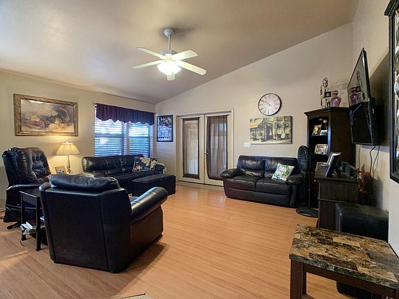 Spacious 3 bedroom 2 bath home located on a cul-de-sac. Majestic views of the Superstition Mountains! Open kitchen with extended countertops, breakfast bar and kitchen nook with bay windows. Great room with French doors exit huge backyard with open side yard, extended covered patio and deck. Shed and citrus trees, a true entertainers delight. No neighbors behind you. You will find no steps on this property. Master bath has a custom walk in shower and a walk in tub. Don't miss this opportunity! Community features a community pool and an HOA fee of $33! Located close to freeways, mountains and lakes.