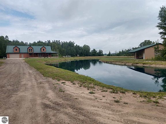 Discover seclusion, woods, wildlife, and quality as you arrive off a long driveway way to this beautiful 40 acres parcel with an immaculate custom built home! The home is nearly 2300 sqft with an additional nearly 900 sqft of living space possible by finishing an insulated 28x32 bonus room above the garage and accessible through the second level! Inside offers a main floor master bedroom with walk-in closet, private bath with a double vanity, tub and walk-in tile shower. The kitchen has a gorgeous stone bar seating area that overlooks the large living room with stunning vaulted wood ceilings. Also on the main level is the laundry room, office, 1/2 bath, large pantry, and an eye catching staircase heading to the second level. Upstairs features a landing area that has a custom built railing and a great view into the living room, two bedrooms with one offering a doorwall out to a balcony overlooking the large pond, full bath and access to the bonus room. Outside there is a large wraparound, covered deck, huge yard area, vinyl wood looking siding, metal roof, beautiful pond, & a small cabin. Storage options galore with a 2 car, 28x32 attached garage and a 30x40 pole barn w/ a 10x40 covered lean-to, concrete floors, 12' overhead door and 200 amp electrical service! A great wooded setting for rest, relaxation, hunting/recreation, or something in between!