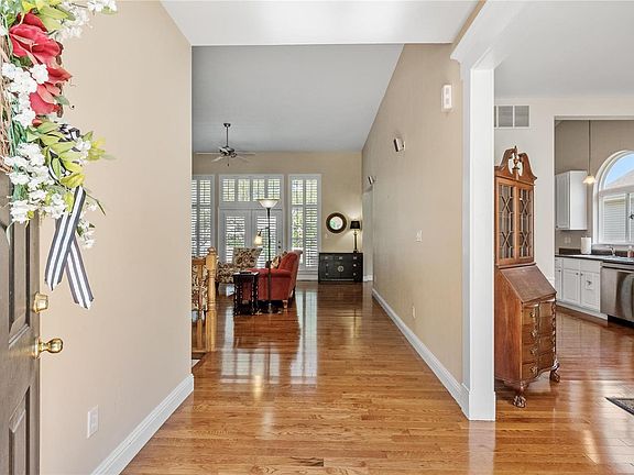 New roof 6/23! Nestled on a quiet street in desired Ft. Zumwalt West School, this beautiful home sits loaded w/custom features. Wood floors flow throughout. The formal dining room w/tray ceiling is ideal for hosting. Soaring 12 foot ceilings highlight the vast great room w/cozy gas fireplace. The wall of windows & french doors w/custom plantation shutters, leads you to the private deck. The open kitchen features vaulted ceilings, white cabinets, & stainless appliances. The adjacent breakfast room has bay window & walkway leading to the patio, main floor laundry room, & garage. French doors lead into the primary bedroom suite w/dual walk-in closets. The luxurious primary bathroom offers a shower, separate tub, & dual sinks. 2 addl spacious bedrooms & bathroom are on the main level. The huge unfinished lower level with rough-in bath is just waiting to be finished to suit your needs. Fantastic location w/all amenities, most within walking distance & easy access to Highway 40/64 & 364.