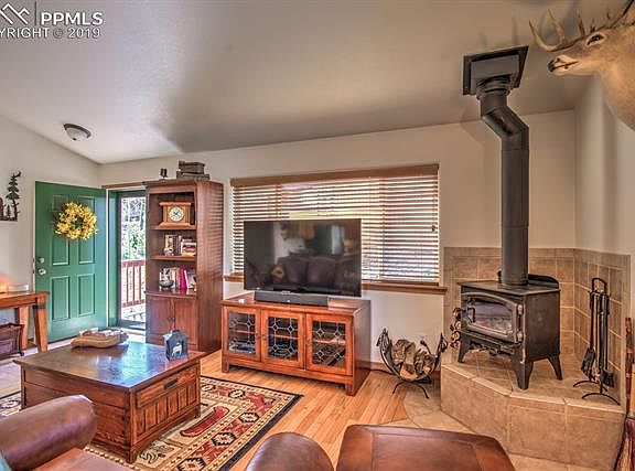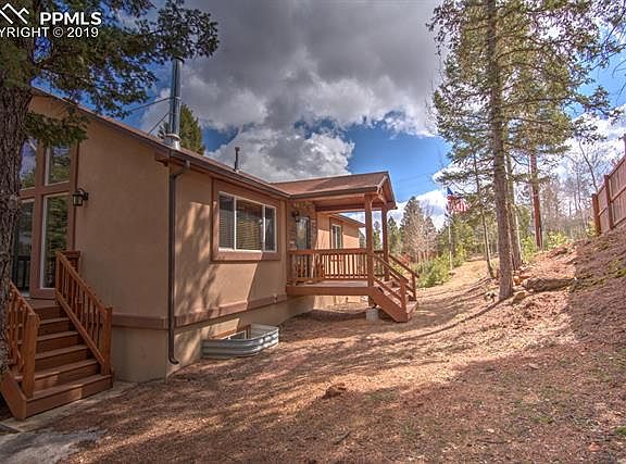 Remodeled home in the mountains on 2 lots, new stucco and stone exterior finishes, new exterior paint; Many upgraded features include: new hot water heater, water softener, 500 gallon cistern water tank for additional water storage, totally remodeled main level master bathroom with a large luxury, walk-in shower; New kitchen sink, faucet, and countertops, soft close hinges added, and crown molding; new ceiling fans throughout, new light fixtures, storm door, new interior paint, new wooden blinds throughout. 2 wood-burning stoves, one on each level for cozy warmth of wood heat! Great room with vaulted ceilings, maple hardwood floors throughout, while main level bedrooms are carpeted. Living room wall of windows facing to the West overlooking the expansive decks and yard! Private back yard setting, hot tub deck, and party deck included!! Located on a corner lot, means only a privacy fence between you and the only neighbor. High speed internet through Centurylink is available. Ample parking, and room for an RV if needed.