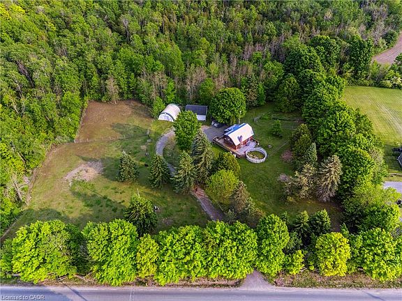 Chalet-Style retreat on 25+ acres, a rare gem with income potential! Full of charm and character, this unique home has been thoughtfully renovated with quality craftsmanship and attention to detail. Offering 3 bedrooms and 3 bathrooms, and self-contingent bachelor apartment with a second kitchen on the lower level, opportunity abounds for multi-generational living or an additional source of income. The main floor boasts a spacious eat-in kitchen, a new powder room, a generous living area combined with office space, and a versatile room with a walk-out to a wrap around deck and above ground pool (new liner is needed). Upstairs you will find a primary bedroom with a private balcony, a spacious second bedroom, and a functional 3-piece bathroom. The lower level bachelor apartment contains a full kitchen and bathroom, and can be accessed through the main dwelling or via a separate entrance. Outdoors, the possibilities continue with several exterior buildings, including a large detached garage with hydro. The new metal roof (2024) and efficient mini-split heating/cooling (2022) allow for affordable and minimal operating costs. Don’t miss the chance to explore this unique offering and envision the possibilities that await!