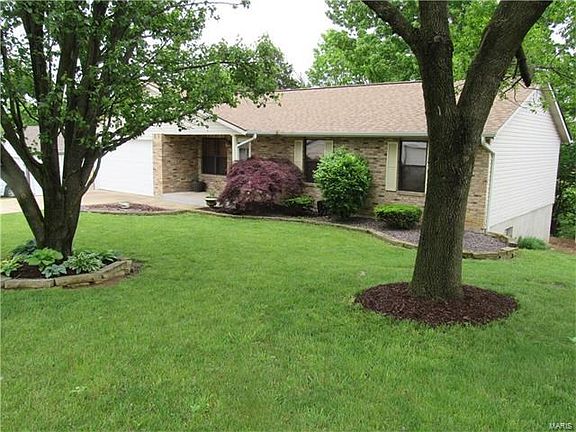 Welcome home to your beautifully landscaped level front yard and private wooded backyard. Enter your home into a large great room with a view of the wooded back yard. Recessed lights surround the ceiling. 3 beds and 2 baths adjoin the center hall. The eat-in kitchen leads to the large deck off the back of the house. Downstairs includes the laundry, rough in for a bathroom, 2 legal sized windows, and a patio door leading to the back of the house. The front wall has been professionally braced for added stability. All this waiting for your personal finishes. Home includes lake privileges. The well maintained home includes newer HVAC, roof, gutters, water heater, and deck. Landscaping and french drains have been recently added. The braces in the basement were added as a precaution but were not required. Enjoy lower Jefferson co taxes in a great location. The home is just minutes from Gravois bluffs shopping center and Saint Clare hospital. All nicely paved roads leading to the home.