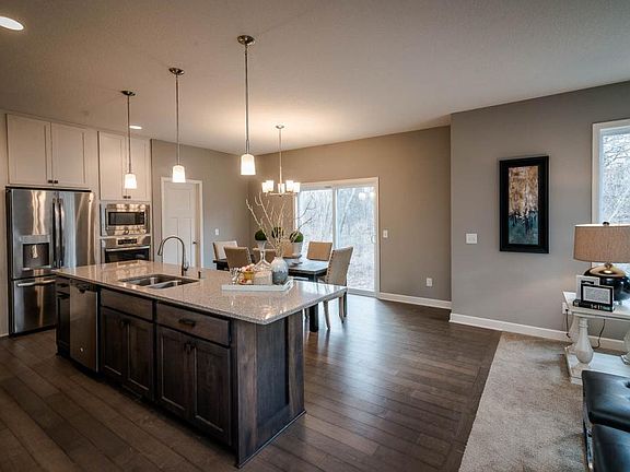Brand New Construction Award Winning Eastridge Home in ISD 719. This 5BR/4BA walkout home has it all! Hardwood floors, custom stone fireplace with built-ins, Silestone counter-tops, SS Kitchen, Luxury owner's suite with tile floors and custom tile walk-in shower, finished walkout lower level, over sized 3-car garage, close to parks, lake and historic downtown, all NEW HOME WARRANTIES & more. Local Award Winning Builder. This new home is a MUST SEE! Other New homes avail now in neighborhood.