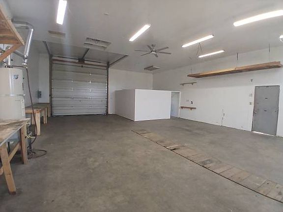 Advertize your business with highway frontage right at the junction of Anchorage, Wasilla, and Palmer traffic. 1,580 sqft shop with 12 foot high pull-through doors and 12ft ceiling. Shop has office space or could be used as a bedroom with on site laundry. $1850/mo rent plus $300 utilities pays for: Electric, heat, snow, lawn care, trash service. Loberg Lake access, stocked for fishing. Please ask for video tour. Office space 132 sqft. Warehouse dimensions: 58'9"Lx29'Wx12'H Front overhead door: 12'x12' Rear overhead door: 10'x10' 2 man doors 1/2 bath Laundry on site. Comes with refrigerator and counter space for a kitchenette. This is a non-smoking building. Up to 3 total dogs and cats allowed. Renter pays $300/mo to cover heat, electric, water, trash service, snow removal, and lawn care.