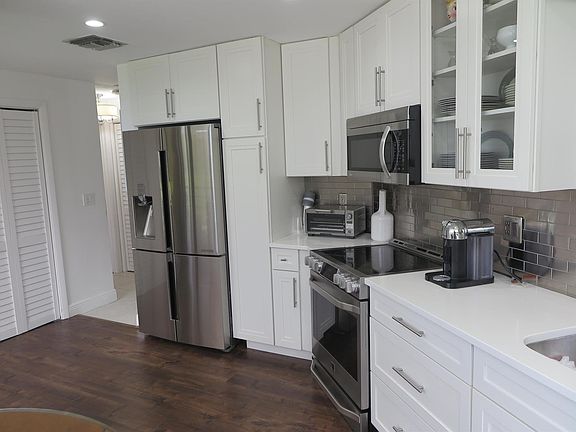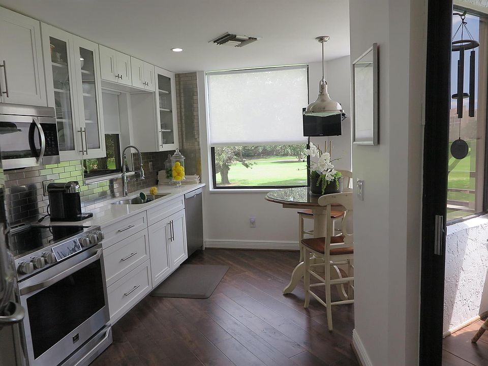 Absolutely stunning furnished seasonal rental They don't come better than this! Turnkey. Completely remodeled spacious unit with gorgeous golf views. Decorator furnishes throughout with all the added touches. Split floor plan. Enclosed patio for extra living space. Additional patio off kitchen. Full-size washer and dryer. Covered carport parking. Two community pools and tennis courts. 4 month minimum. Cable, internet and water included. Conveniently located in the beautiful gates of Boca Pointe. (copy of floor plan in documents).