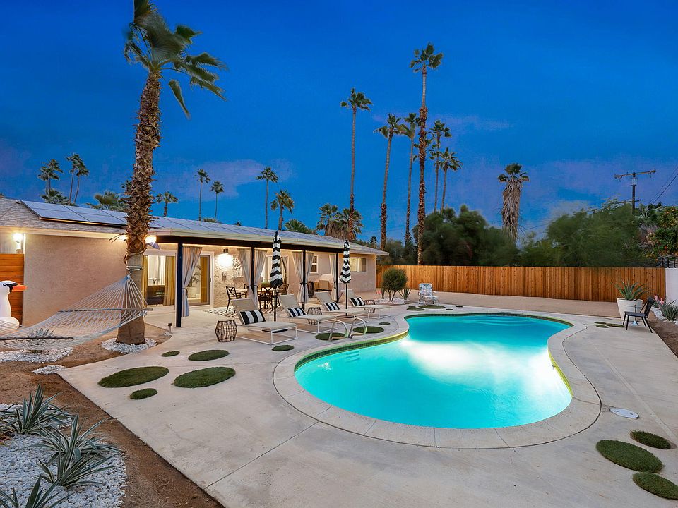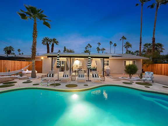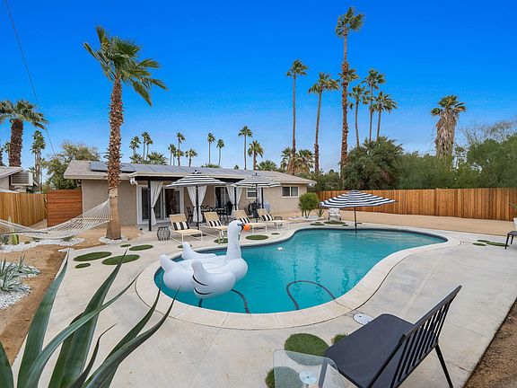 This meticulously cared for, tastefully upgraded and stylish pool home in South Palm Desert awaits! The pride of ownership is evident as soon as the front door opens and you enter to an open concept living area, remodeled kitchen, and dining area. The fun and whimsical decor continues to the private backyard where a recently resurfaced pool awaits! Other perks in this 3 bedroom 2 bath home include a beautifully renovated hall bath with soaking tub, custom closets, newer HVAC system (installed 2020) with added duct-work and vents, upgraded, newer oversized pool equipment (installed 2019), 2 car garage and solar that will be owned at close of escrow! Close to The Living Desert, hiking, and all of the shops and dining on El Paseo, the heart of Palm Desert. Almost every part of this property has been updated in the last 6 years! Won't last long!