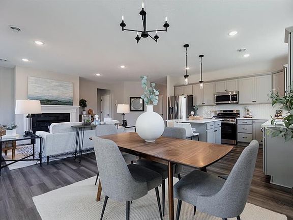 This under construction HUDSON floor plan epitomizes main level living with an open, light-filled design. Expected to finish in August, Natural light pours through the windows along the staircase, highlighting the great room’s space and cozy gas fireplace. The kitchen, the heart of the home, shines with beautiful cabinets, stainless steel appliances, quartz countertops, and a large island.