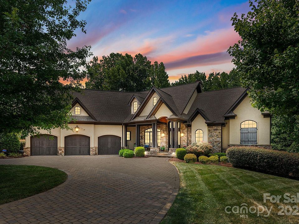 Step into luxury with this meticulously designed French country-style home in a prestigious gated community. A paver circular drive way will bring you right to the 3 car garage. Notice the hand chiseled stacked stone accents on the exterior & interior as you step into the open floor-plan with a spacious dining room, office, & cozy living room that features exposed beams & a cozy stone fireplace. The chef’s kitchen boasts Thermador appliances, double ovens, custom cabinetry, rounded breakfast nook overlooking the family room with a built-in fireplace—perfect for entertaining. Enjoy year-round outdoor living with a covered porch, gas grill, & fireplace. The spacious primary bedroom has soaring double trey 13-ft ceilings, with a designer bathroom featuring heated floors & custom closets. Elegant chandeliers fill this home with warm light. Oversized windows pour in natural light throughout all living areas. Smart home technology gives you sound & lighting controls at the tap of a finger.
