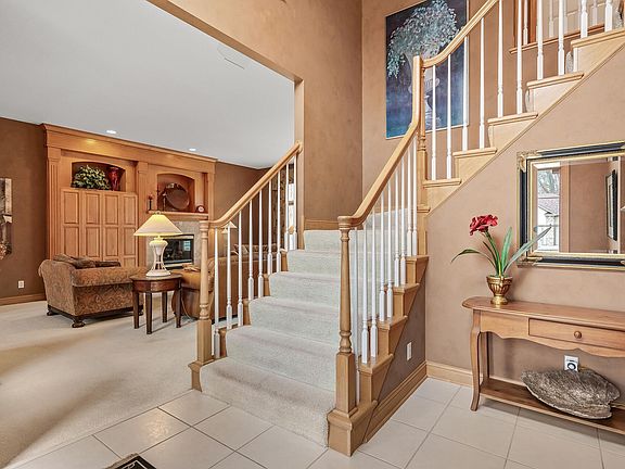 Nestled in the corner of Cottage Grove's beautiful Hidden Valley, this custom built 2 story walk-out home backs up to Oakwood Park providing stunning nature views & privacy. The grand 2 story foyer leads to a spacious living room with 10 foot ceilings, gas fireplace & stunning maple built-ins! There is also a home office with built-in desk & cabinets. The kitchen & dining area have gorgeous maple floors & custom cabinetry, loads of natural light, newer stainless steel appliances, granite tops, center island & recessed lighting that walks out to a large maintenance free deck. Upstairs you will find 3 bedrooms including the generous Owner's Suite with a large walk-in closet & an amazing Owner’s Bath with separate tub/shower & double vanities. The walkout lower level has a large family room with recessed lighting, another full bathroom & a huge bedroom (currently used as theatre room). A few recent updates include roof & windows (3 years), new water heater & water softener (1 year).