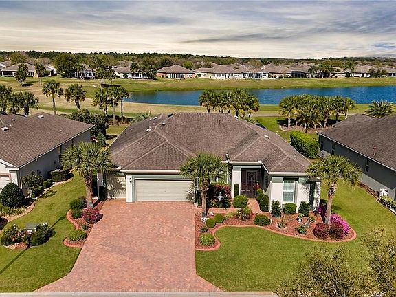 Look no further! Paradise awaits in this beautiful, custom-built Kingston model home situated on a premium lot overlooking the community golf course and stunning water views. Located in the gated, Stone Creek Golf Course Community this home will not disappoint. Curb appeal galore with detailed professional landscaping and a paver-lined drive welcomes you to this home that shows pride of ownership with custom details and upgrades throughout. This home features many desirable extras such as high ceilings, tile in the main living areas, recessed lighting, and crown molding throughout in an open and inviting floor plan. The elegantly appointed kitchen offers Zodiaq quartz countertops, solar tube lighting, a large pantry, and bar height seating for casual dining. Plenty of entertainment space with a living room, formal dining room, casual eating area, and separate den flanked by stunning architectural columns. Three sets of sliders offer direct access to an expanded birdcage lanai with pavers offering a desirable outdoor living area. The strategic positioning of the lanai allows for morning sun and shaded afternoons giving you a perfect place to relax and enjoy the scenic views. This home has been meticulously maintained and includes a brand new Trane 5 ton air conditioning system. Custom plantation shutters, inside laundry room, solar fans and additional insulation for added energy efficiency, an expanded garage with electric privacy screen and golf cart parking are just a few more things you will love about this fantastic home. Move-in immediately and start enjoying fantastic community activities and premium amenities including a golf course, resort-style pools, health spa, trips and entertainment, and more!