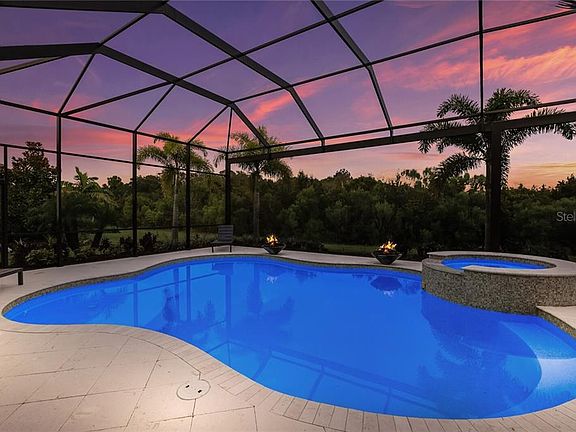 Luxury awaits....take one step inside this professionally decorated Gardenia II, 4 bedroom, 4 and a half bath home and you won't ever want to leave! In addition to four bedrooms you have a private study with french doors. The open floorplan offers multiple gathering spaces for family and friends. Relish the stunning lighting and window treatments! Enjoy movie night in the bonus room or evenings on the terrace sipping wine in front of the fire place. Every day is wine night with a bottle from your custom wine wall. Every bedroom is ensuite and offers generous closet space. The master suite has his and her closets, with sitting room and doors to your spa and pool. The master bathroom has his and her dual sinks and beautiful free standing tub and massive shower. The pool is refreshing and a work of art with two gas fire pits and large sun deck! Lakewood Ranch Country Club East offers a the Florida lifestyle you have been dreaming about. Wake up and take a stroll to the neighborhood gym and then a dip in the pool or grab a raquet and have a game of tennis on the neighborhood courts. Later, meet up with friends at the clubhouse for lunch or a gourmet dinner! Lakewood Ranch is centrally located and a short drive to Interstate 75, University Town Center shops and restaurants, nationally ranked beaces and A rated public schools. What are you waiting for? Make your appointment today and start living the incredible Florida lifestyle.